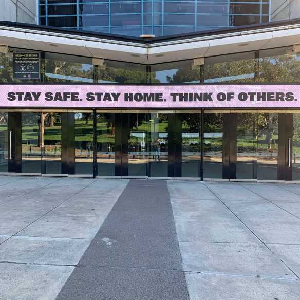Even at the MCG, the advice is stay safe, stay home, and think of others