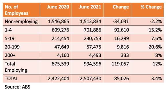 I would expect to see bankruptcy numbers to rise – especially among sole-proprietors and SMEs (the latter of whom, in aggregate, account for the bulk of employment by headcount). This is always a lag economic indicator, given the time it takes for insolvencies and liquidations to work through the system. Despite the overall increase in the number of business in 2020-21 (see table below), 93.0% of businesses had turnover of less than $2 million, and 28.7% of businesses had turnover of less than $50,000. There was a 12.5% increase in businesses with turnover of less than $50,000, and only a 0.5% increase in businesses with turnover of $5 million to $10 million and $10 million or more. Given that 81.7% of exiting businesses had turnover of less than $200,000, there is a likelihood that more businesses will go under. This period is going to be especially challenging for sole traders and SME owners who typically mortgage their principal home to fund their business. The next ABS business entry/exit report in August will be very interesting.